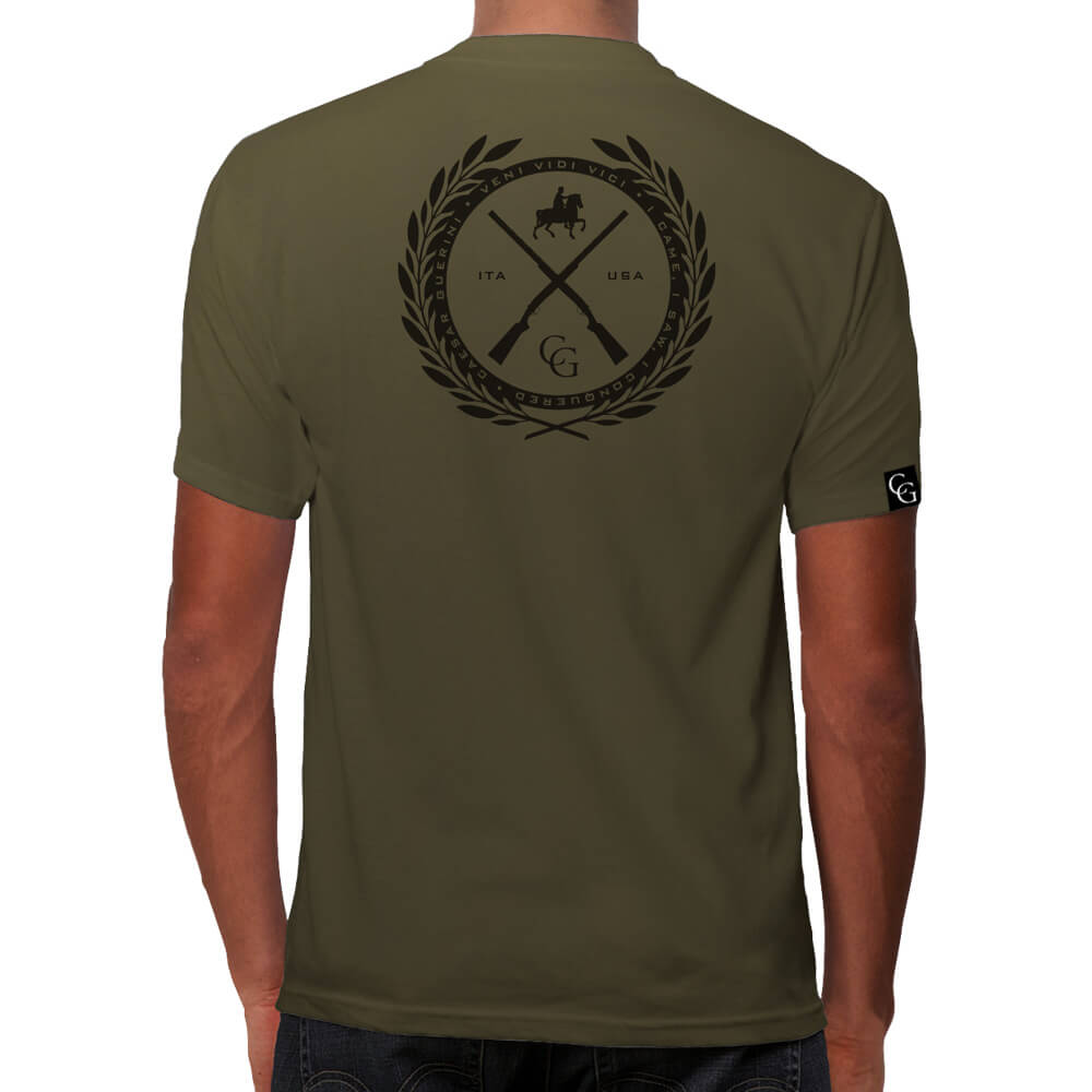 Legio X Equestris, a Roman legion, was levied by Julius Caesar in 61 BC. The Tenth was the first legion levied personally by Caesar and was consistently his most trusted. Legends were formed around their great battles and consequently their victories at the command of Caesar himself. In the spirit of Legion X, we’ve reimagined a crest to be worn by our very own Caesar Guerini shooters while in the midst of competition, and quests for glory, fame, and fortune. Hail Caesar! This premium 5.5oz 100% combed ring-spun cotton tee also features a hand-sewn woven tag on the sleeve. Flip it over to discover the hidden message underneath.