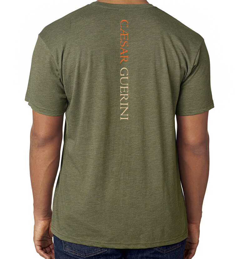Classic style is transcended by our modern take on a vintage aesthetic! The ultra-soft and luxurious lightweight Tri-blend material feels so good, you may never take it off. This special blend of 4.2 oz, 32 singles, ringspun cotton, polyester and rayon has become a favorite for it's superior comfort and breathability. Looking good = shooting good. In this tee, you're sure to do both! Front graphic contains our iconic “Veni Vidi Vici” mantra with English translation below. “I came. I saw. I conquered.” Back features a Caesar Guerini logo print down the center spine for a modern look that is sure to turn heads. Available in Military Green or Macchiato.