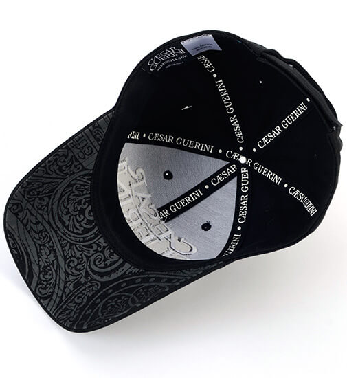 Mid profile structured heavy brushed cotton twill cap with six panels and adjustable velcro enclosure on the back. The front of the hat features raised CG logo embroidery. Below the visor features a printed engraving pattern. On the back of the hat it reads “Veni Vidi Vici” (I Came, I Saw, I Conquered!). Other custom features through-out this premium hat.