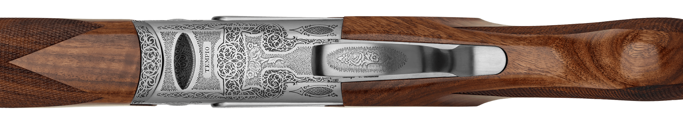 Previously chosen by the Editors of Field and Stream Magazine as “Best of the Best” in Shotguns, the Tempio is designed to be a sleek and fast pointing shotgun in the field; the perfect companion for upland game hunters. Its low-profile receiver matched with a trim stock, classic Prince-of-Wales grip and Schnabel fore-end make the gun a perfect match for fast game birds. The Tempio features a contemporary style of “ornato” scroll with tasteful gold accents. The action is further enhanced by a nickel finish protected by our proprietary Invisalloy™ coating. Each Caesar Guerini game gun is carefully engineered to balance near the hinge point, distributing the weight evenly between the hands, which is the secret to a finely crafted shotgun. The Tempio also features a deluxe grade of Turkish walnut enhanced with a hand rubbed oil finish.