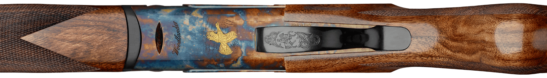 At Caesar Guerini upland bird hunting is a passion. We wanted a gun that would truly reflect our love of fall coverts, autumn foliage, wet gundogs, and the smell of wood smoke. The Woodlander is the shotgun you imagine in such a setting. It was created to be a classic upland game gun for tight cover and fast-flushing birds. The case color hardened action exudes an understated elegance. It is embellished with a single gold ruffed Grouse executed in the Bulino style while nicely figured Turkish walnut featuring a traditional oil finish speaks of quality from a bygone era. The meticulously fitted wood butt plate allows for snag-free gun mounts and adds a custom look and feel. The Woodlander is also offered with an optional English straight stock. The lightweight barrels incorporate solid mid ribs to keep out debris, 7mm top rib in 12 gauge and 6mm top rib in sub gauges. If your priorities are traditional good looks and superior handling, then the Woodlander is the gun for you.